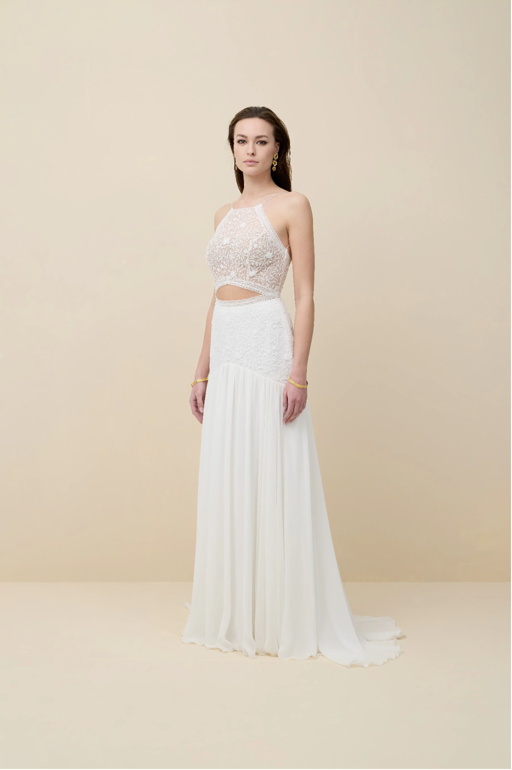 Allen Rembo-Brautkleidern gemeinsam sind leichte fließende Stoffe, sowie außergewöhnliche Spitzen und Schnitte. Das Label hat den Hochzeitskleidern im Laufe der Jahre einen unverkennbaren Charakter und eine Handschrift verliehen, die ein Rembo-Brautkleid zu dem macht, was es ist. Feminin, elegant, aber auch immer ein bisschen wild – in jedem Fall locker und leicht.
